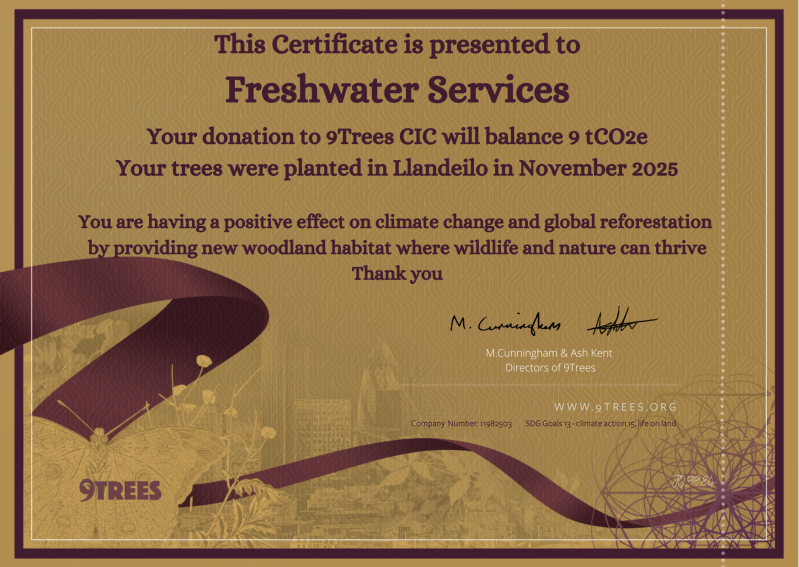 Freshwater Building Services are proud to announce an update from 9Trees on trees planted on our behalf in 2025. Our contribution will help balance 9 tonnes of carbon dioxide equivalent!